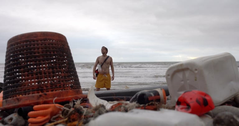 Inspired by the climate crisis, and an incredibly urgent piece for us and our generation. Using the anxieties that many of us feel to try and put together a film that imagines a world where the climactic tipping points, that are still very much on the table now, have happened and the subsequent ice melt has pushed sea levels to such a high level that very little land remains. One of the ideas that inspired it, too, was to imagine, if all this happened, what would be left of our civilisation? We thought that the tragic truth would be that it most likely would be all of the plastic and waste that are symptomatic of the crisis we are in. What would happen to the people, too? The main character the Scavenger, inspired by Star Wars, believes they are the last person on Earth and goes from island to island scratching out their existence. However, we will discover that even after an apocalypse the last scraps of land are jealously held on to - and those who own them covet them. Even now, surrounded by sea - the symbol of our destruction by greed - malignant self-interest survives. And the life the Scavenger seeks to find and preserve may be gone forever.